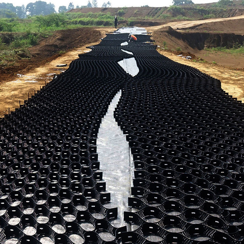 Geocell è un tridimensionale flessibile, favo come le strutture fatte dalle strisce che del polietilene ad alta densità (HDPE) il whichare ha legato in modo ultrasonico insieme per formare una configurazione estremamente forte. Il sistema di Geocell può essere riempito di widerange di materiale: aggregato, concreto, sabbia, suolo, ecc.
