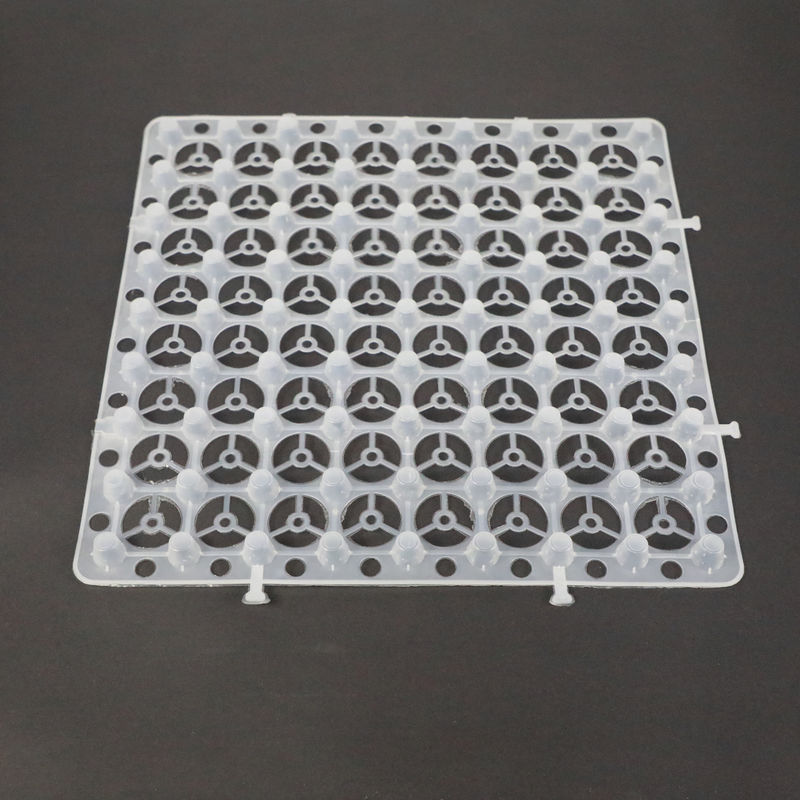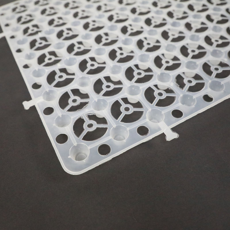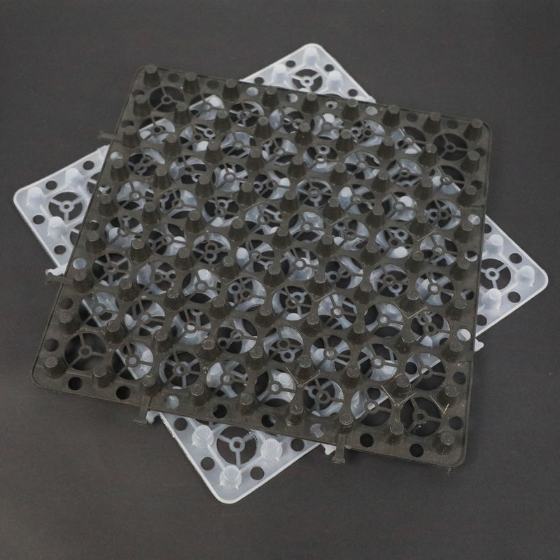 I piatti di plastica di drenaggio e di stoccaggio sono fatti da HDPE (polietilene ad alta densità), facendo uso di alta pressione per iniettare la plastica per formare le coperture a forma di foro, con spazio ed il punto di sostegno stereo; nella cima delle coperture, coprente di non tessuto come filtrazione a livello per la percolazione dell'acqua, lo stoccaggio dell'acqua ed il drenaggio dell'acqua.